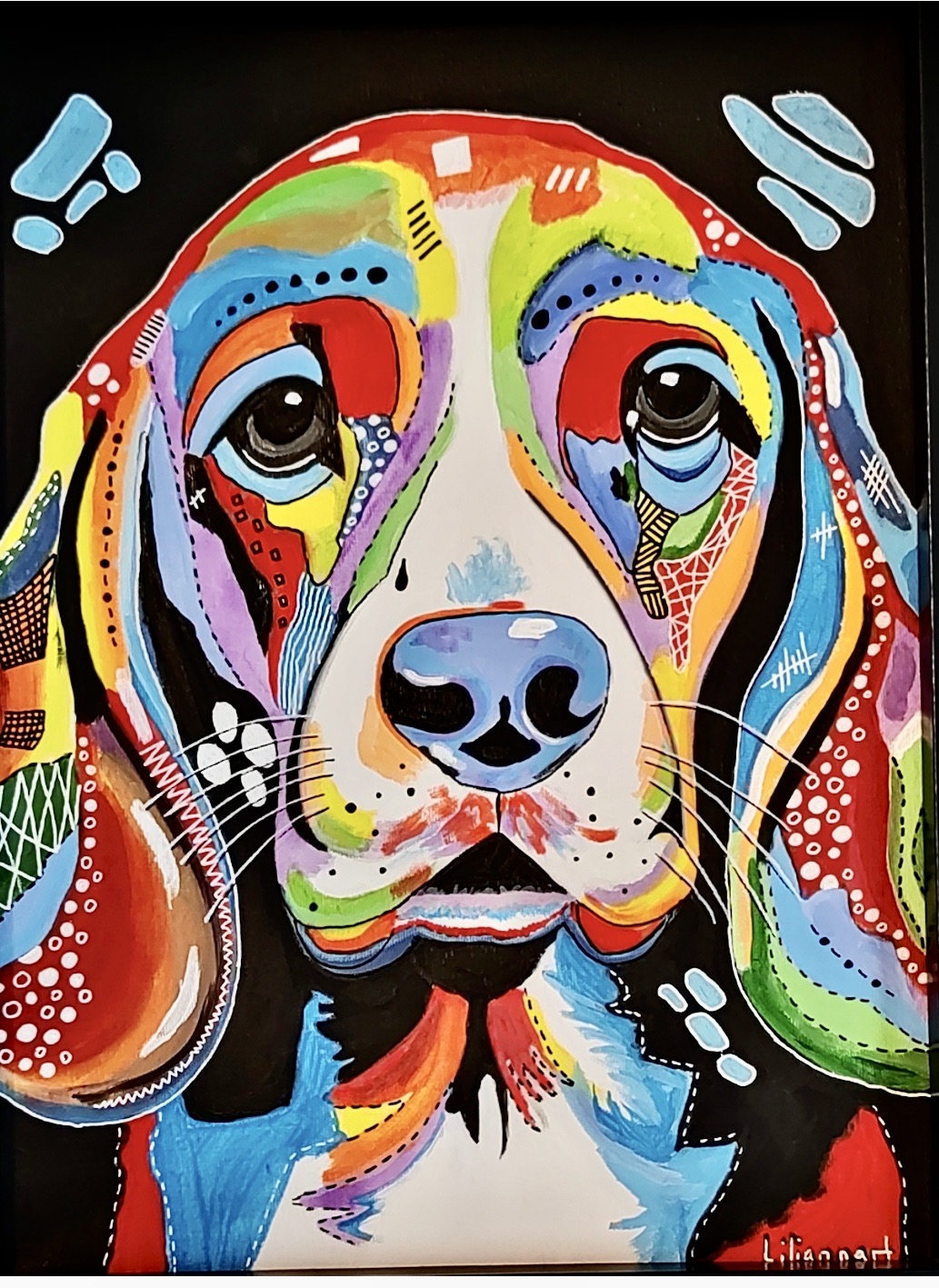 Pintado a mano sobre liezo 100% algodón ; Técnica : Acrílico ; Estilo abstracto, colorido y simpático.